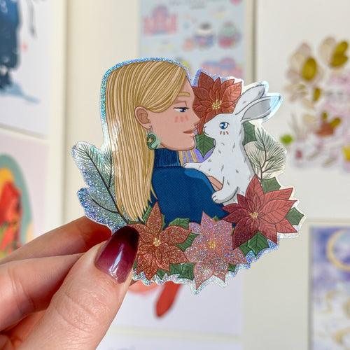 Poinsettia and Bunny (December 2023 Patreon Vinyl Sticker)