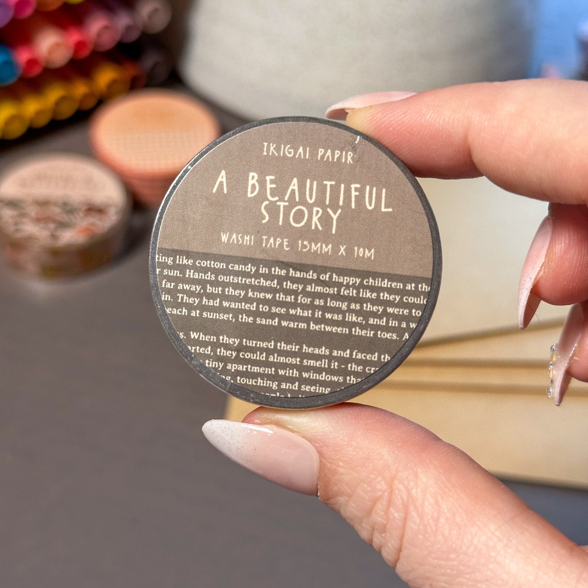 The story on these washi tapes were written on a late summer evening in Oslo, Norway. The story is printed on three different tapes - a light horizontal, a dark horizontal, and a light vertical.